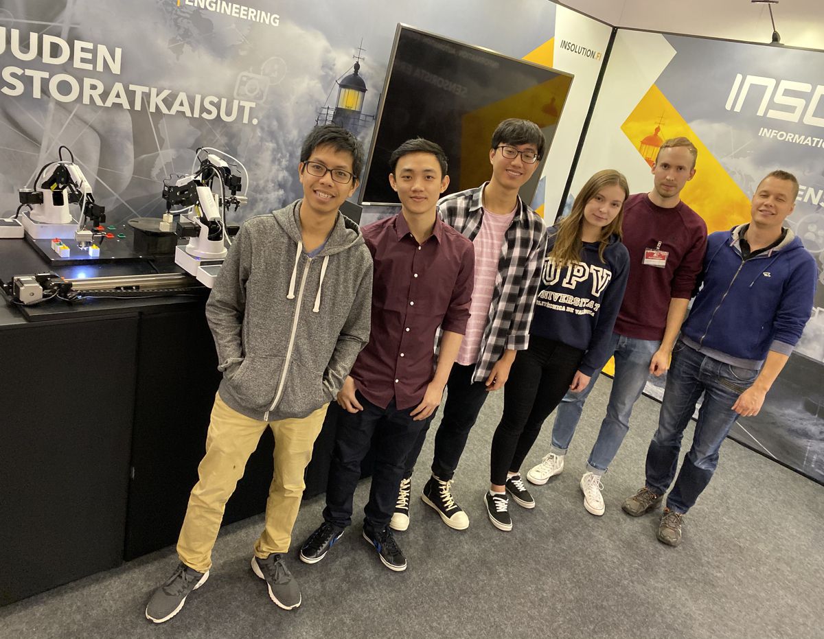 Riihimäellä HAMKin opiskelijat toteuttavat vuosittain satoja projekteja ja opinnäytetöitä työelämän ja yritysten tarpeisiin niin paikallisesti kuin ympäri maailmaa. Koska uudet teknologiat ovat keskeinen osa käytännönläheisiä ja työelämän kanssa tiiviissä yhteistyössä toteutettavia koulutuksia, syksyllä 2019 yksikköön hankittiin InSolution Oy:ltä useita Dobot Magician Educational -opetusrobotteja. Oivalluksia ja oppimisen iloa ei puuttunut, kun opiskelijat saivat mahdollisuuden toteuttaa InSolutionin messuosastolle näyttävän ja kiinnostusta herättävän käytännön esimerkin robotiikan mahdollisuuksista. Aikaa toteutukseen oli vain kaksi kuukautta.